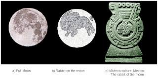 In the Americas they see the man in the moon. In Japan they look up at the moon and see rabbits pounding mochi.