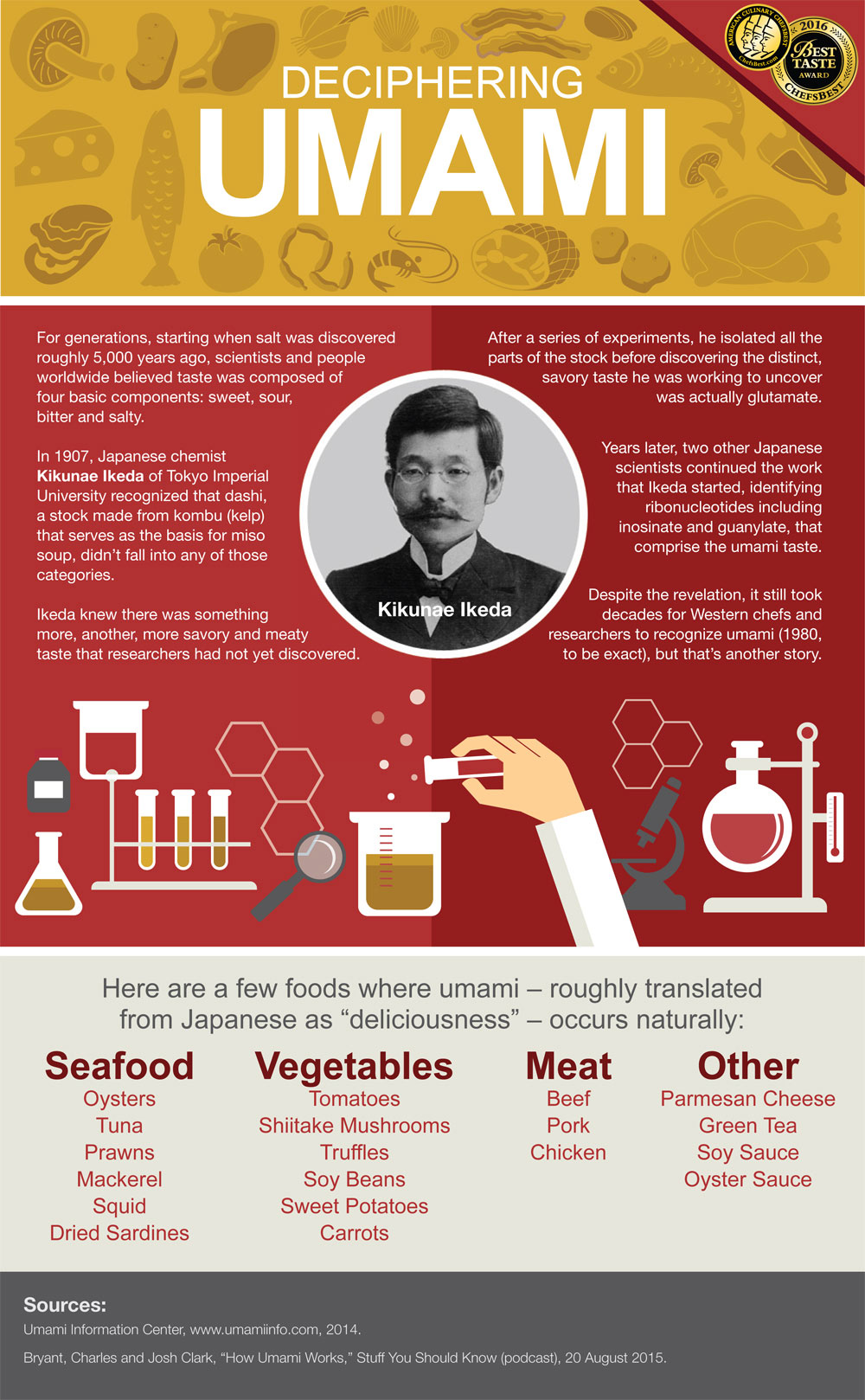 There are five basic tastes, sour, sweet, bitter salty and umami. We all know the first four tastes but until recently the western world all but disregarded this fifth taste. Umami was discovered at the Imperial University of Tokyo by scientist, Kikunae Ikeda. in 1907. He called this fifth flavor umami ( that literally translates to mean “delicious taste”).
